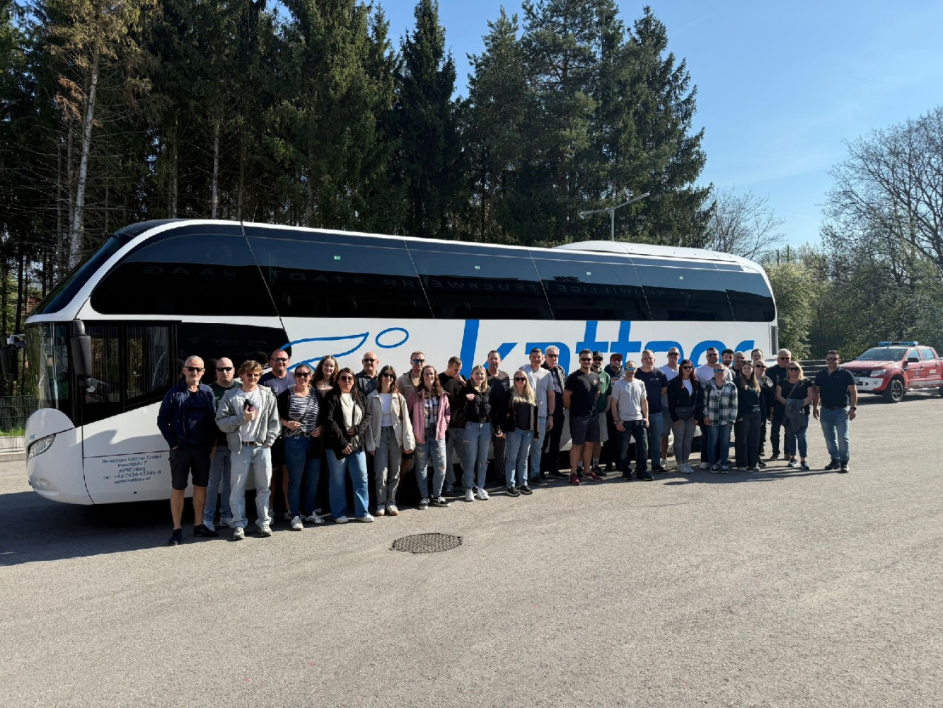 Gestartet haben wir mit einem Eröffnungsgetränk in unserem SIZ, bevor es mit dem Bus weiter zum neuen Feuerwehrhaus in Enns ging.
